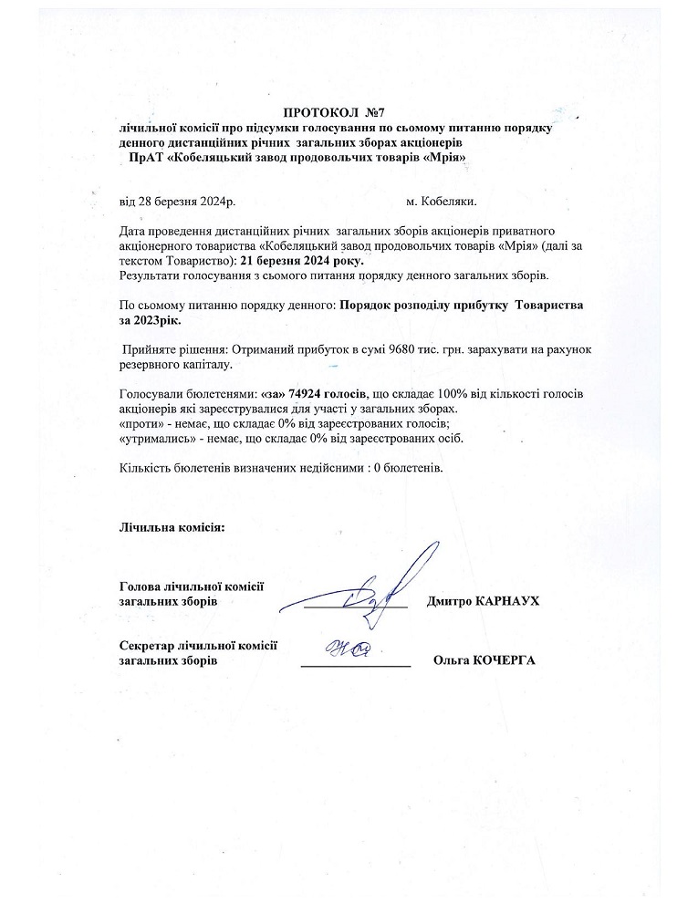 7. Порядок розподілу прибутку Товариства за 2023 рік.